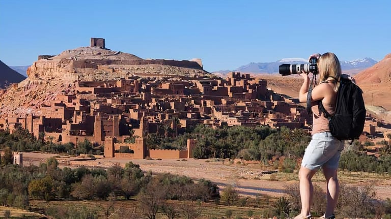 Description: Venture into “the gateway to the desert” with a day trip to Ouarzazate and the iconic Ait Benhaddou. Explore film studios and ancient kasbahs, and walk through the fortified city where famous movies were filmed. An adventure for movie buffs and history lovers alike.